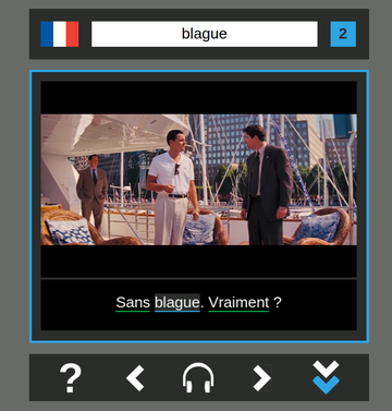 Sublexis is a free tool for improving French, English and Spanish vocabulary. It presents users with chains of flashcards (taken from film scenes) as examples of word context. It's not perfect, but I find it pretty fun for learning new French words myself. I've tried to design it to work well on mobile and touch screen devices, try it out and let me know what you think!